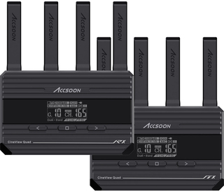 Accsoon CineView Quad - это комплект беспроводной системы передачи, состоящей из передатчика и приемника SDI и HDMI с уникальной конструкцией складных антенн. Accsoon CineView Quad может передавать HD-видео и HQ-аудио сразу на 4 разных устройства (приемник, мобильный телефон, планшет, ноутбук и т.д.) практически с нулевой задержкой с помощью запатентованной двухканальной технологии передачи Accsoon (2,4 ГГц + 5 ГГц)