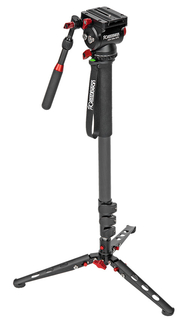 Три откидные ножки монопода изготовлены из алюминиевого сплава и снабжены фиксаторами и резиновыми опорами. На нижней части шарнира предусмотрена съёмная пятка, которая служит опорой при использовании монопода со сложенными или снятыми ножками. Долговечность конструкции обусловлена тем, что ножки монопода и его шарнир изготовлены из металла.