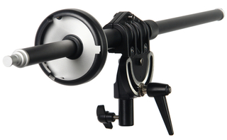 Монтажный кронштейн с посадочным отверстием 5/8'' и винтом фиксации предназначен для установки и закрепления штанги на осветительной стойке со стандартным шпиготом. Благодаря конструкции кронштейна осветитель может наклоняться в пределах 180° (чтобы найти подходящую точку освещения), а его положение фиксироваться мощной зажимной переставной ручкой с «храповым» механизмом.
