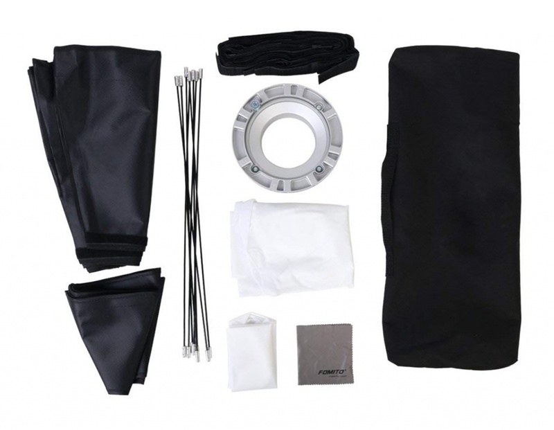 Сборка конструкции интуитивно понятна и не требует много времени. Установка на студийный свет происходит через байонетное соединение: литой алюминиевый адаптер и сменное байонетное кольцо на Bowens.